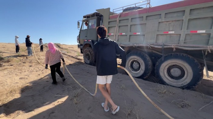 圖為長安大學赴甘肅民勤“‘青’走治沙路,共架生態(tài)‘橋’”暑期實踐隊跟隨本地人一起為梭梭樹澆水。李晨露供圖