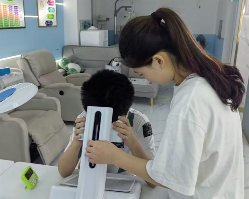 圖為孫筱雅給小朋友做視力訓(xùn)練