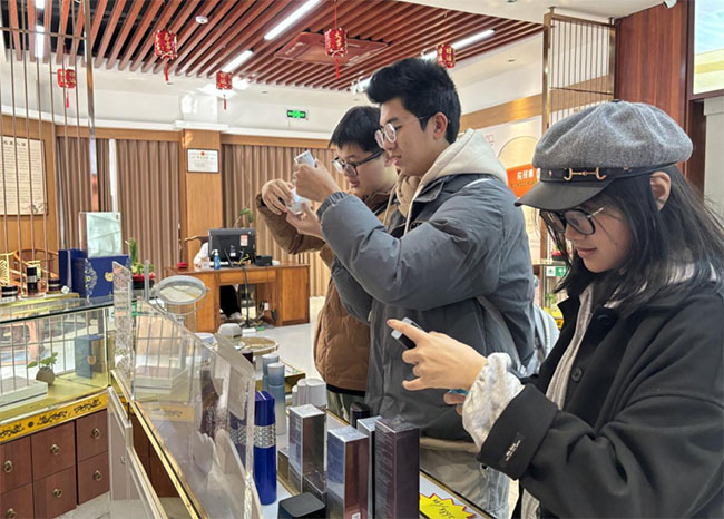 次日,實踐隊來到片仔癀名醫(yī)館(古城分館),現(xiàn)場觀摩診療過程,體驗相關(guān)產(chǎn)品。隊員們進一步明晰了片仔癀在中醫(yī)辨證施治體系里的關(guān)鍵角色,也深感這片凝聚著古人智慧結(jié)晶的國藥,正通過當代醫(yī)者的傳承與運用,持續(xù)為民眾健康,續(xù)寫傳奇篇章。實踐隊在名醫(yī)館前合影,定格這一收獲滿滿的瞬間。