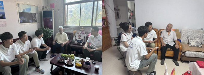 在薄板泉黨員教育基地,隊員們邀請到當(dāng)?shù)匾晃焕宵h員為大家分享紅色故事。在離開薄板泉黨員教育基地后,隊員們?nèi)グ菰L了兩位老黨員,其中一位老黨員黨齡已滿50年,服務(wù)隊代表社區(qū)為他送上了紀(jì)念章,表達(dá)對老黨員的敬重。在另一位老黨員家中,隊員們圍坐在老人身旁,聆聽他講述抗美援朝時期的崢嶸歲月。這些故事,在隊員們的心中奏響奮進(jìn)的最強音,激勵隊員們在新的征程上,以老一輩共產(chǎn)黨員為榜樣,勇挑時代重?fù)?dān),書寫青春華章!