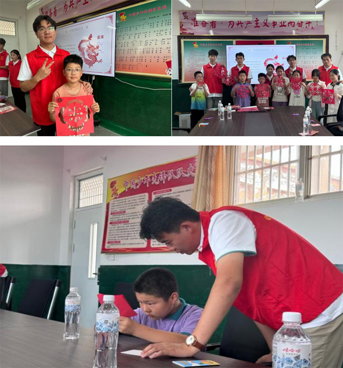 為了讓孩子們近距離感受非物質(zhì)文化遺產(chǎn)的魅力,服務(wù)隊精心準(zhǔn)備了非遺剪紙體驗(yàn)環(huán)節(jié)。志愿者們先向孩子們介紹了剪紙藝術(shù)的歷史淵源、文化內(nèi)涵和基本技巧,隨后親自示范,剪刀在紙上靈活游走,不一會兒,一幅幅精美的剪紙作品便呈現(xiàn)在眼前。孩子們迫不及待地拿起剪刀和彩紙,在志愿者的耐心指導(dǎo)下,小心翼翼地裁剪著。當(dāng)看到自己親手完成的作品時,孩子們的臉上洋溢著自豪的笑容,非遺文化的種子在他們心中悄然種下。