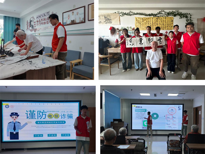服務隊抵達薛城區(qū)親和源康養(yǎng)中心后,精心組織了多元化的課堂活動。通過情景劇演繹的防詐課堂,以生動形式為老人普及防騙知識;開展健康課堂傳授養(yǎng)生之道,增強老人健康管理意識;設置智能手機課堂,切實幫助他們融入數(shù)字生活,跨越“數(shù)字鴻溝”。為進一步豐富老人們的精神文化生活,服務隊陪爺爺奶奶進行書法、手工制作等互動環(huán)節(jié)。志愿者與老人們共同揮毫潑墨,感受傳統(tǒng)文化的魅力;手工制作區(qū)同樣充滿歡聲笑語,老人們在志愿者協(xié)助下完成一件件手工藝品。