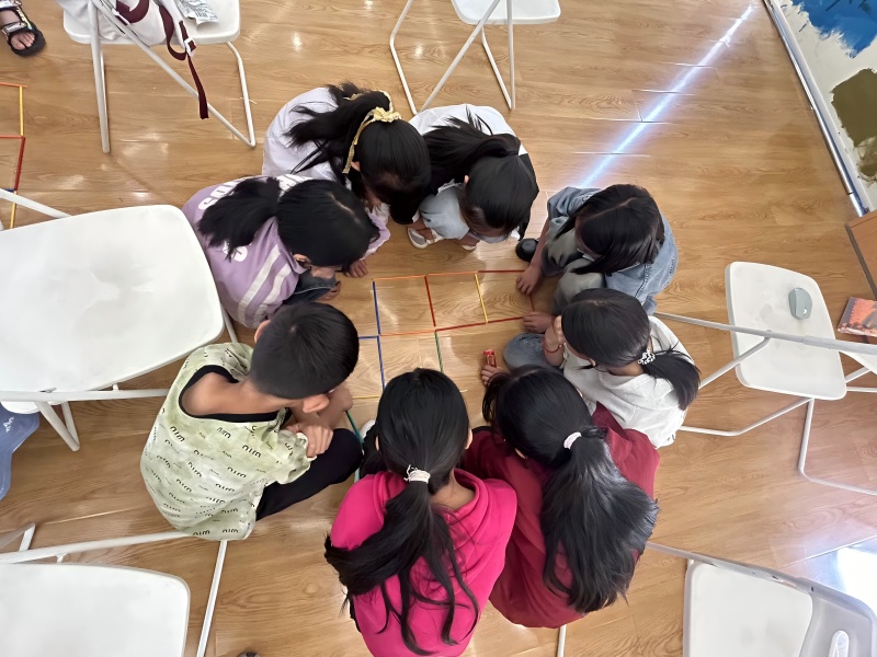 巧手解幾何:木棒開拓思徑火柴棒被擺放的井然有序。"移動小棒,使原來的五個正方形變成四個正方形。"細(xì)碎的摩擦聲頓時填滿教室。小朋友們反復(fù)排列放射狀結(jié)構(gòu),鼻尖沁出細(xì)汗。"想一想有幾根小棒被兩個正方形共享。"支教隊員點撥這些小朋友們的思路;砣婚_朗的輕嘆中,邏輯的齒輪咔噠咬合。