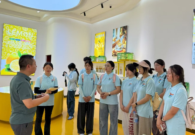 兩日奔走,檸檬為筆,繪出振興答卷。從政府擘畫“中國青檸檬第一鎮(zhèn)”藍圖,到萬畝智慧果園,再到電商云銷、深加工增值、地標(biāo)品牌出海,白羊鎮(zhèn)把一顆酸檸檬釀成致富甜果。重慶外語外事學(xué)院英語學(xué)院“萬”“項”更新齊振興實踐團循著1937年三株幼苗的足跡,見證黨建引領(lǐng)、強村公司、農(nóng)戶聯(lián)動的產(chǎn)業(yè)閉環(huán),體悟科技、標(biāo)準(zhǔn)與品牌的力量。青年攜鏡頭與思考而來,帶走的不僅是清香,更是一份可復(fù)制、可推廣的鄉(xiāng)村振興“檸檬模式”。