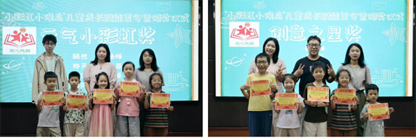 最激動人心的環(huán)節(jié)接踵而至。兩名來自“大企鵝”志愿服務團隊的成員吳梓萌與邵佳勵作為特別的頒獎嘉賓,帶著溫暖的笑容走上臺前。他們?yōu)樵诒敬蜗牧顮I中表現(xiàn)優(yōu)異、取得進步或是有美好品質(zhì)的“小候鳥”們頒發(fā)了榮譽證書。拾金不昧小雷鋒獎、元氣小彩虹獎、進步之星獎、創(chuàng)意之星獎、全能小太陽獎、助人為樂獎......一份份承載著肯定與鼓勵的證書遞到了孩子們手中,每張稚嫩的臉上寫滿了喜悅與驕傲。