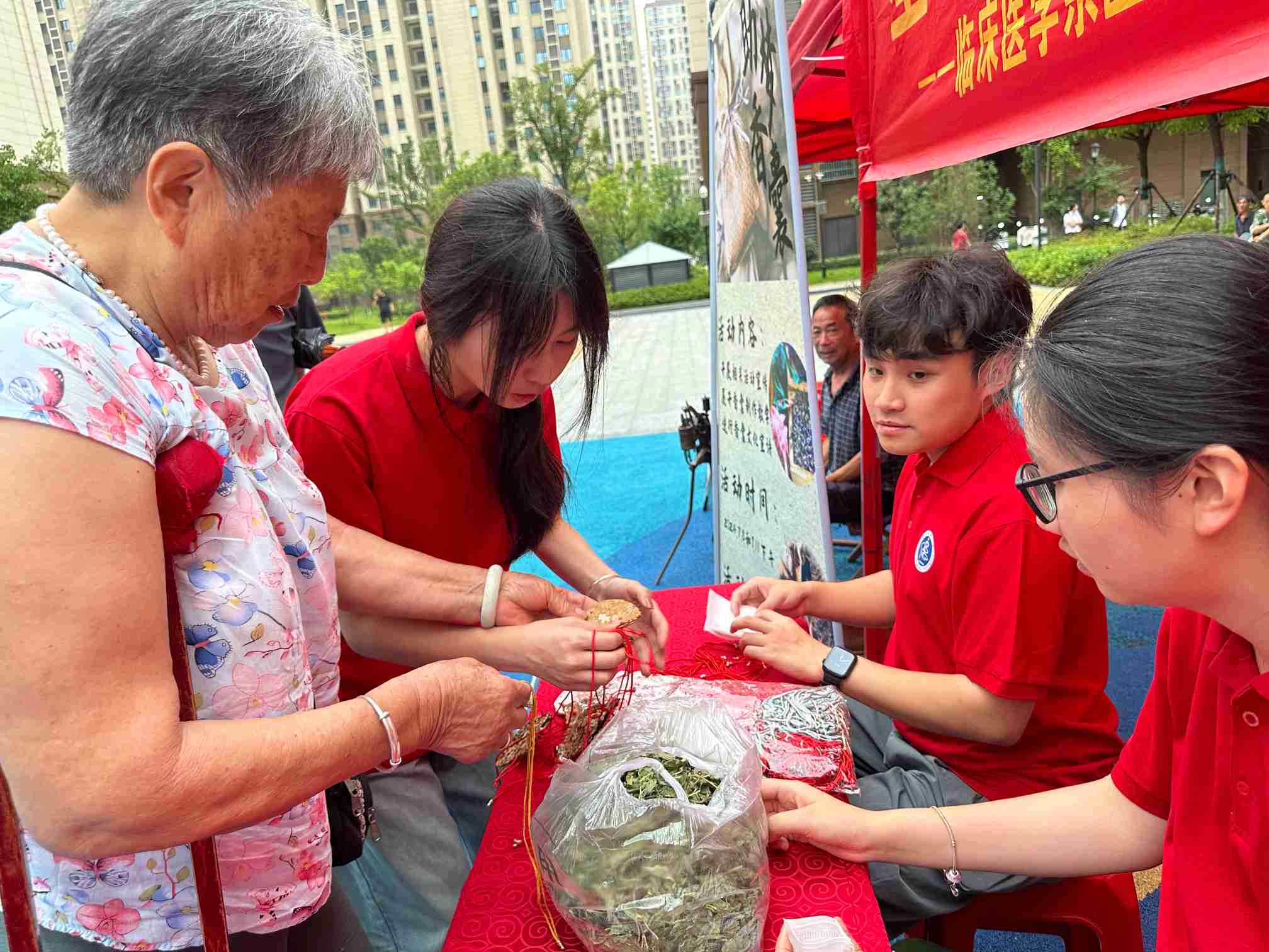 7月10日下午,在團隊成員們的指導(dǎo)下,社區(qū)居民們自己動手制作了香囊,在穿針引線中,將中藥材裝入香囊中。香囊內(nèi)填充了艾葉、白芷、薄荷等具有安神功效的藥材,成員們還向大家分享了香囊的寓意和作用:香囊中的藥材可以釋放出淡淡的香氣,有助于舒緩情緒、改善睡眠。圖為實踐隊成員幫助老人制作香囊。孫一鳴供圖