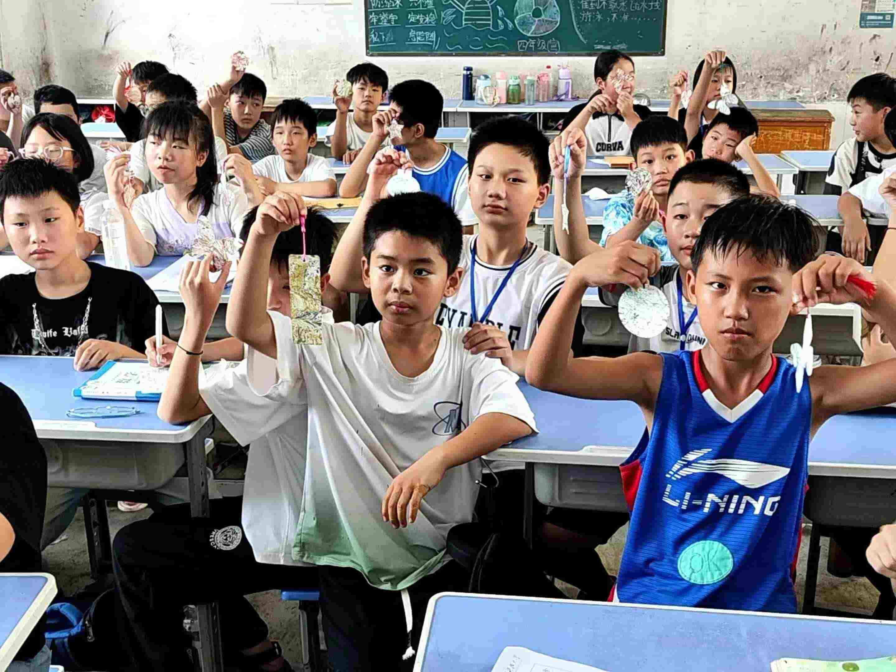 活動(dòng)最后,每位同學(xué)都自豪地展示了自己制作的漂漆書簽,大家在老師的組織下,高舉作品,留下了一張張燦爛的笑容和珍貴的合影。