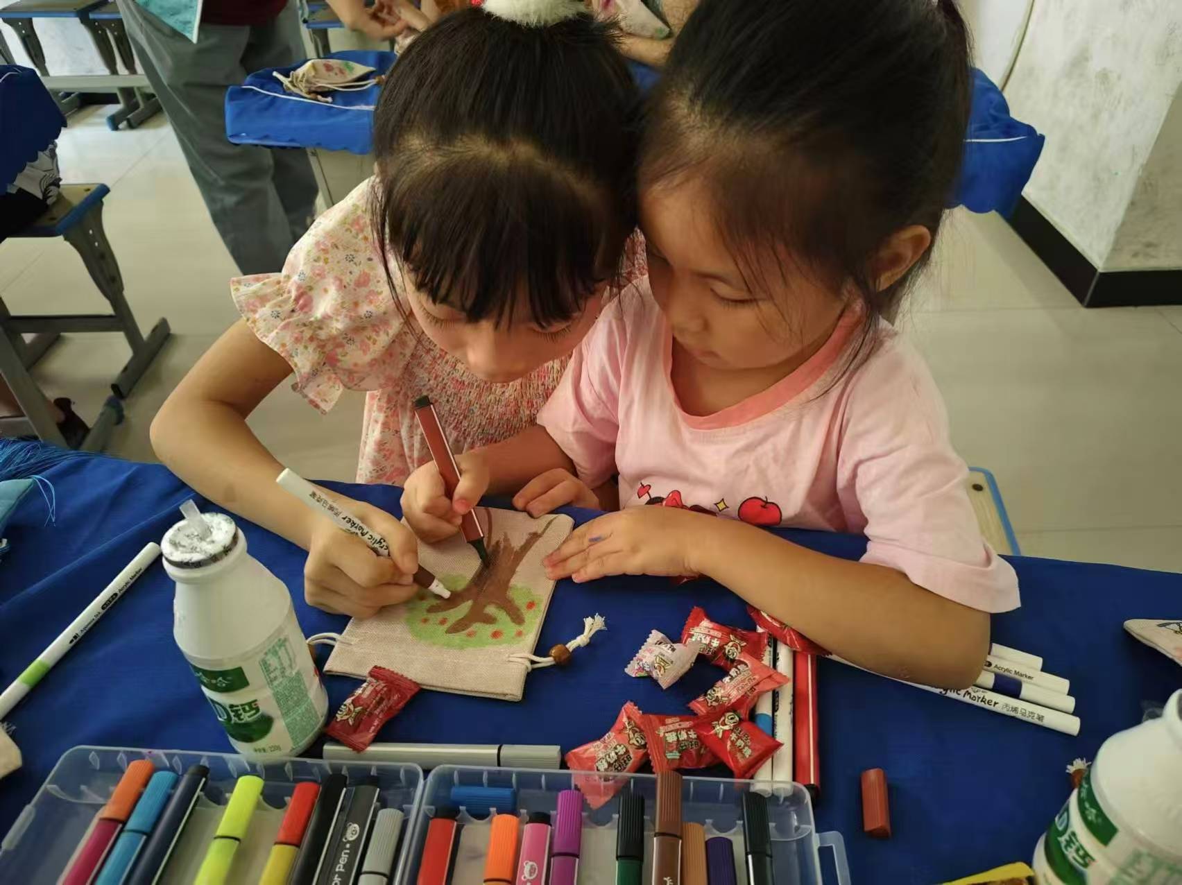 第四部分由實踐隊員們組織小朋友們進行驅(qū)蚊香包的制作,香包可以讓小朋友們自由發(fā)揮畫上自己喜愛的圖案和文字,再給其中塞入實踐隊員們提前在醫(yī)院配置好的中草藥從而達到驅(qū)蚊的作用。這個環(huán)節(jié),小朋友們各顯神通大家都十分積極踴躍的參與,樂在其中。