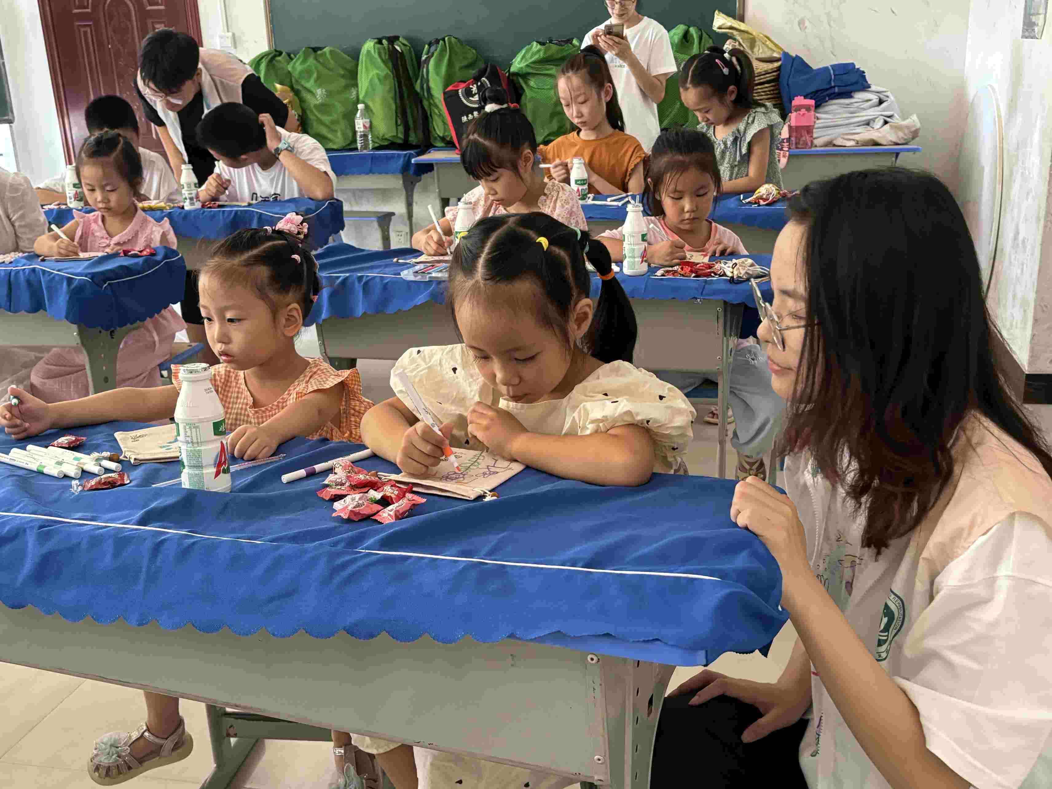 與老師和隊員們的討論結(jié)束后,確定并布置了給小朋友們開展暑期安全健康教育的教室。實踐隊員們對先到達的小朋友們進行了詢問和交流。