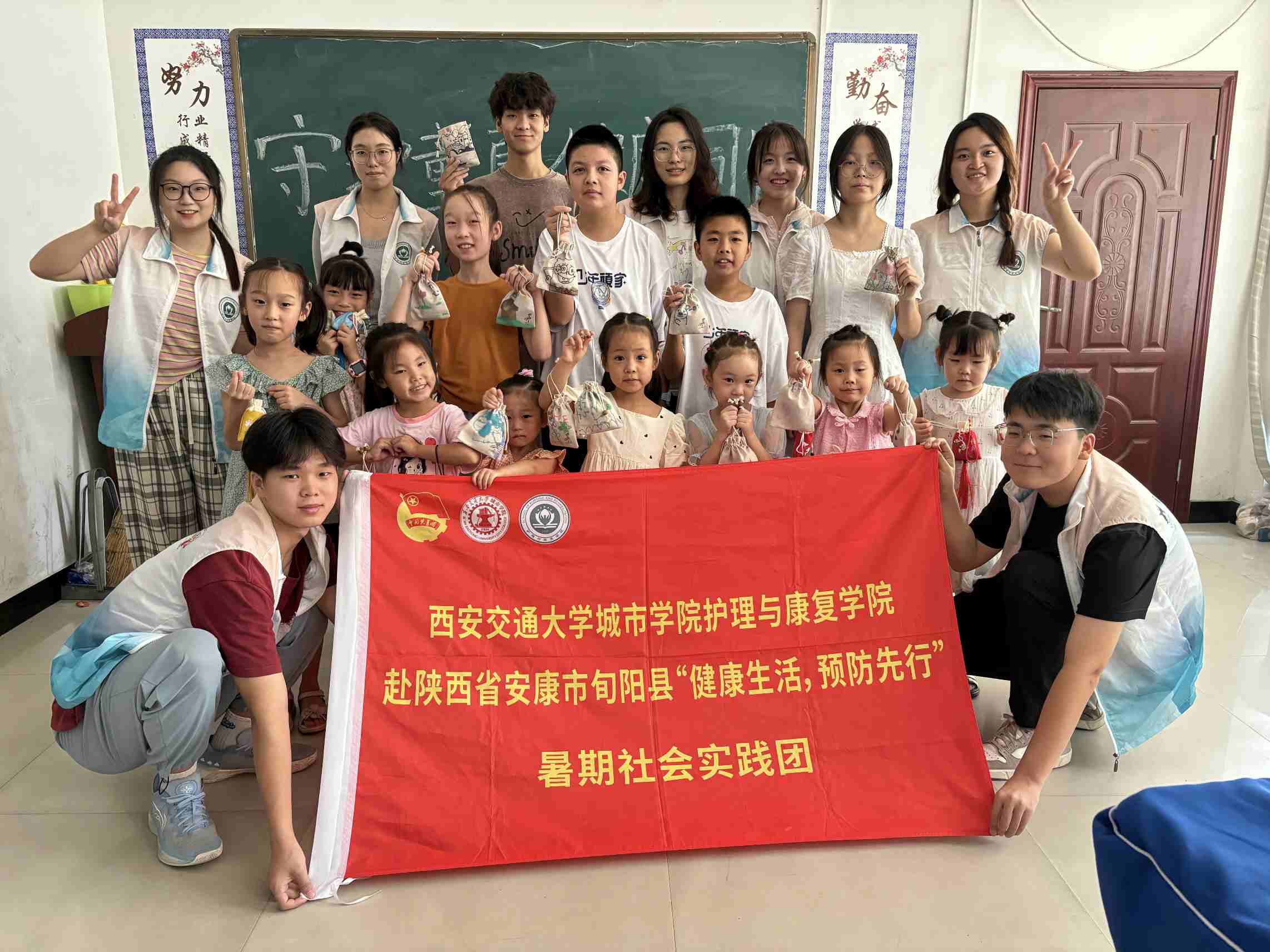在本次暑期安全健康知識小課堂上,隊員們各司其職,默契配合。在老師的幫助指導(dǎo)下,我們的課堂比預(yù)期中的發(fā)揮更成功,孩子們學(xué)習(xí)了安全健康知識,明白了安全健康教育的重要性,學(xué)會了一些情況下的緊急處理。在此次課堂結(jié)束之際,實踐隊員們與老師和孩子們合影,象征著此次活動圓滿結(jié)束。