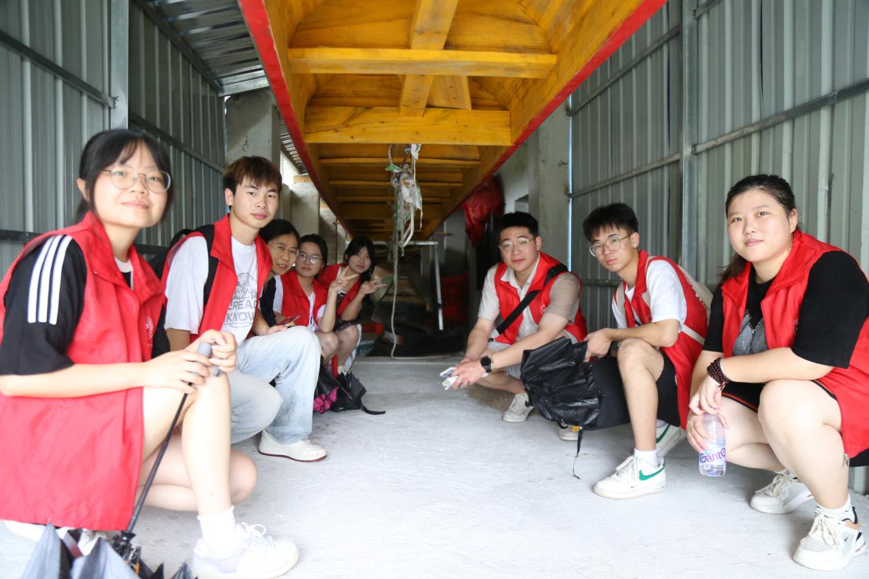 隨后,實(shí)踐團(tuán)踏入歷史悠久的龍舟存放倉(cāng)庫(kù),深入體驗(yàn)和學(xué)習(xí)這一傳統(tǒng)文化遺產(chǎn)。龍舟文化作為中華民族的傳統(tǒng)體育項(xiàng)目,承載著豐富的歷史文化價(jià)值。實(shí)踐團(tuán)的成員們?cè)诖娣盘幉粌H親眼見(jiàn)證了龍舟的獨(dú)特構(gòu)造,而且通過(guò)專(zhuān)業(yè)人員的解說(shuō),了解到龍舟制作工藝的精妙與復(fù)雜。這些長(zhǎng)條形的船只不僅僅是賽事中的競(jìng)速工具,它們的每一寸雕刻、每一抹色彩都蘊(yùn)含著深厚的文化內(nèi)涵。參觀過(guò)程中,實(shí)踐團(tuán)成員表現(xiàn)出濃厚的興趣,他們積極提問(wèn),渴望從每個(gè)細(xì)節(jié)中挖掘出更多知識(shí)。