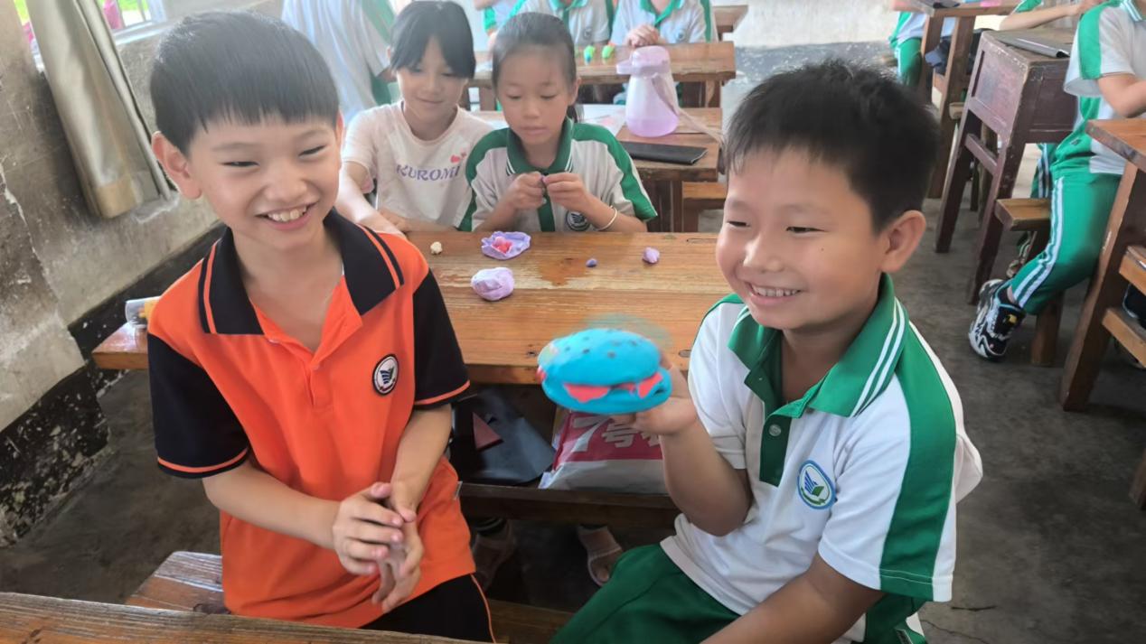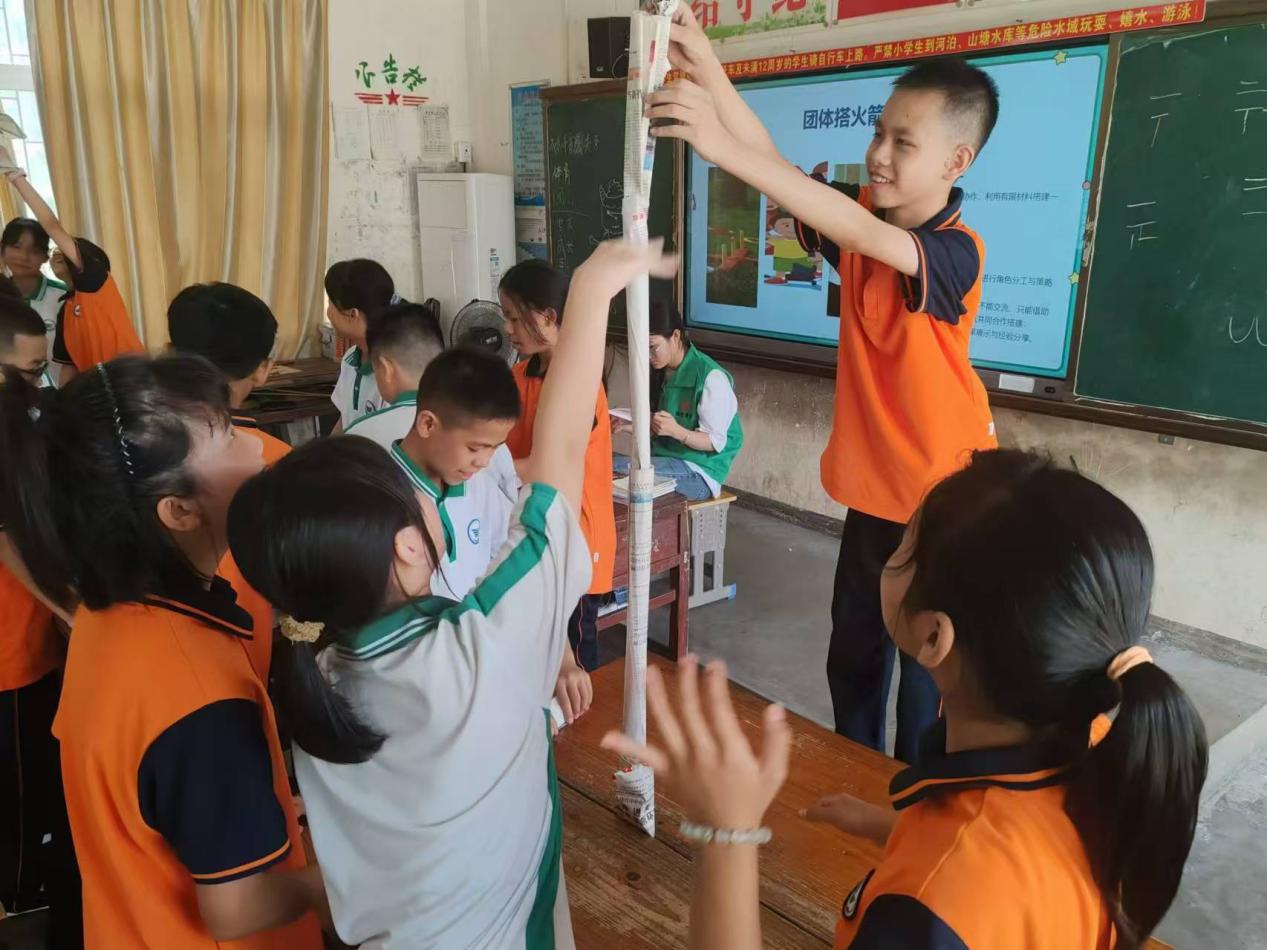 除了開展紅山村調(diào)研實(shí)踐,梅里尋夢隊的義教組成員們在梅州市五華縣安流鎮(zhèn)上布小學(xué)開展了一項為期七天的夏令營活動。在開展中,隊員們將廣州等一線城市的“跨學(xué)科”趣味課堂融入了上布村教育實(shí)踐當(dāng)中。