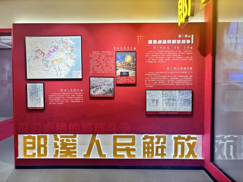 “郎溪革命運動的開展”展區(qū)中,1927年“建平公學(xué)”故事引人駐足,葛琴等先驅(qū)以教育為盾播撒革命火種,次年郎溪首個團組織誕生。郎溪百年間從聲援“五卅”、建臨時黨支部,到抗戰(zhàn)解放,再到融入長三角一體化,始終與黨同心同行。