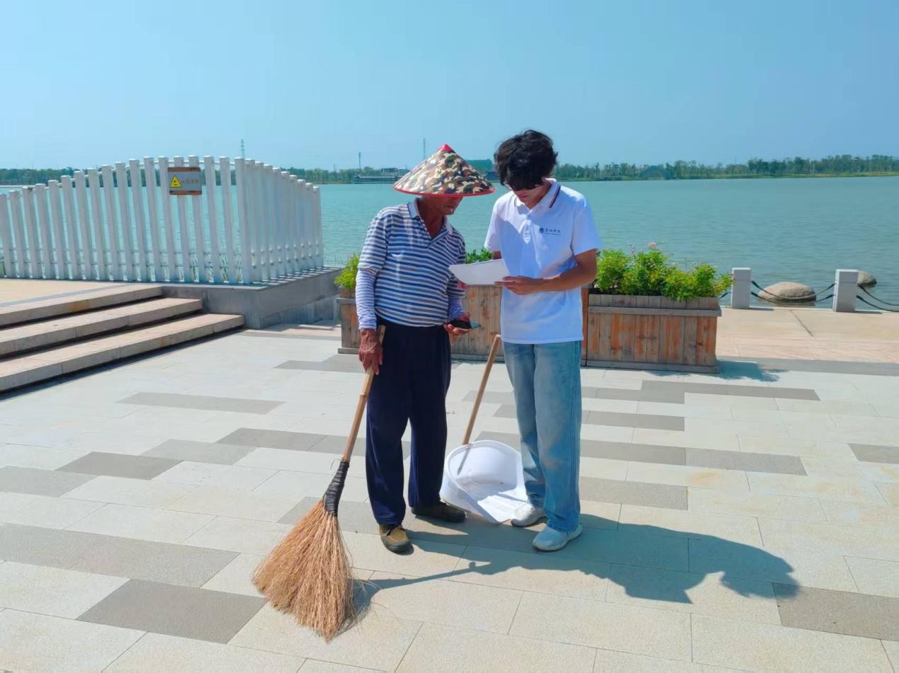 圖為公園掃地大爺回答調(diào)查問卷。王蓉蓉 供圖