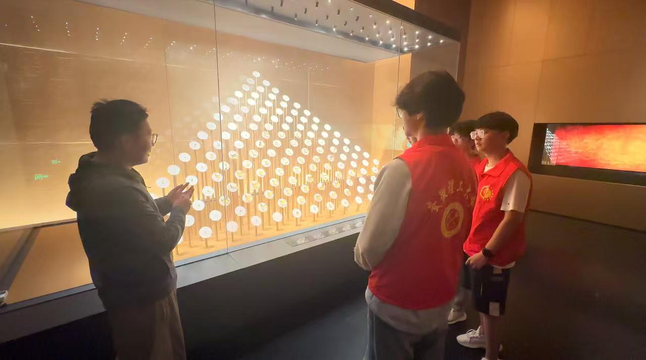 圖為指導(dǎo)老師介紹“郢爰”金幣的歷史(攝影:汪驍涵)