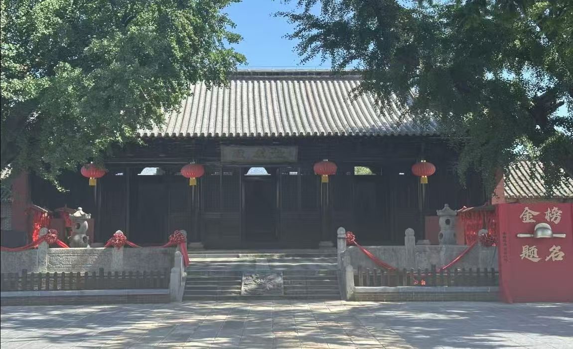 當(dāng)日下午,團(tuán)隊(duì)踏訪報(bào)恩禪寺與壽縣孔廟。報(bào)恩禪寺中,夔龍紋飾依舊斑斕,佛教建筑中隱見楚式美學(xué);孔廟內(nèi),千年銀杏守望大成殿,莊嚴(yán)格局映照儒家禮制。團(tuán)隊(duì)成員結(jié)合建筑格局、文化符號(hào)與時(shí)代背景,探討楚文化與儒釋道融合的在地表現(xiàn)。此一發(fā)現(xiàn)為未來文旅融合提供了新的靈感——可否打造“多教合璧”文化體驗(yàn)項(xiàng)目,呈現(xiàn)一城多元之美?