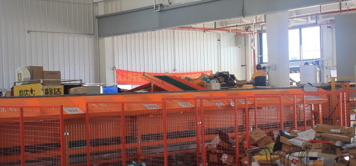 圖為維楚云倉(cāng)貨物自動(dòng)分揀傳輸帶