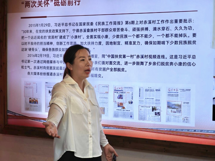 圖為村史館講解員楊玉燕正在細(xì)致講解赤溪幸福嬗變 周余宣 供圖