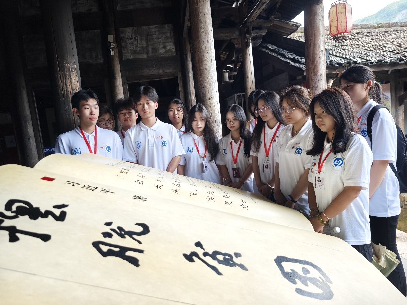 圖為實踐隊隊員正在學(xué)習(xí)赤溪村脫貧歷程 周余宣 供圖