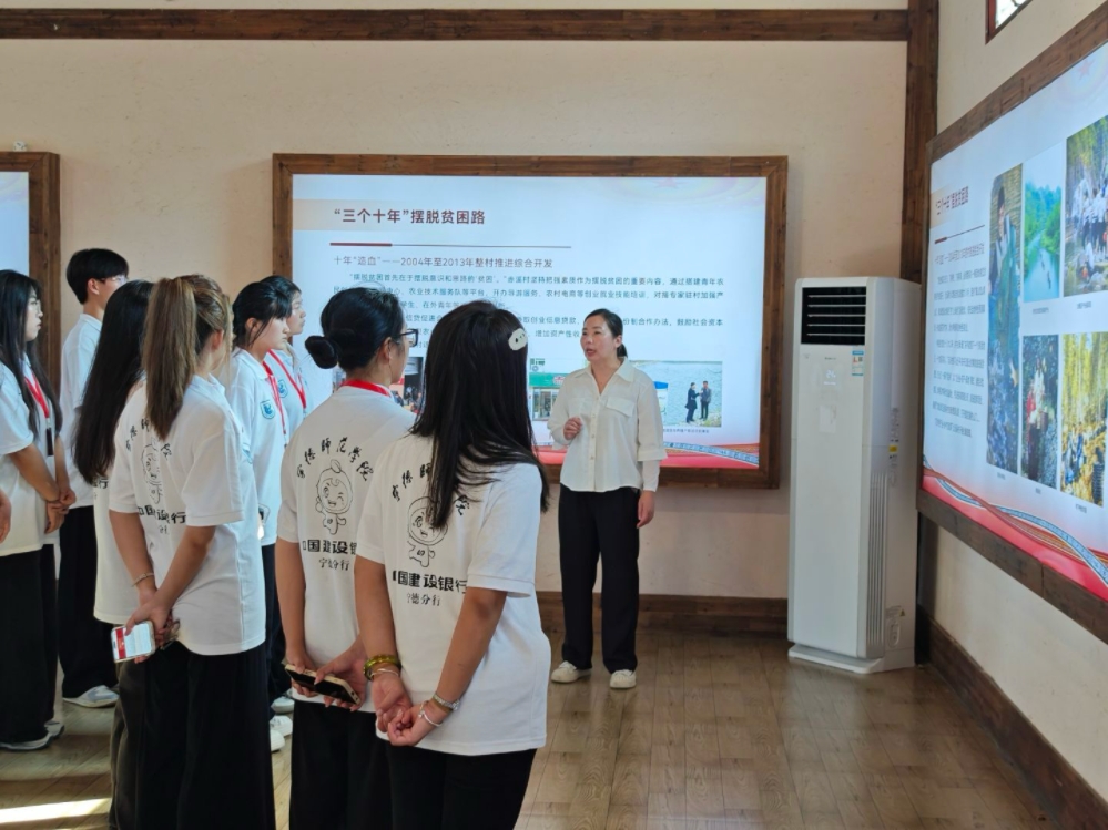 圖為實踐隊隊員認(rèn)真聆聽講解員闡述赤溪脫貧致富的歷程 周余宣 供圖