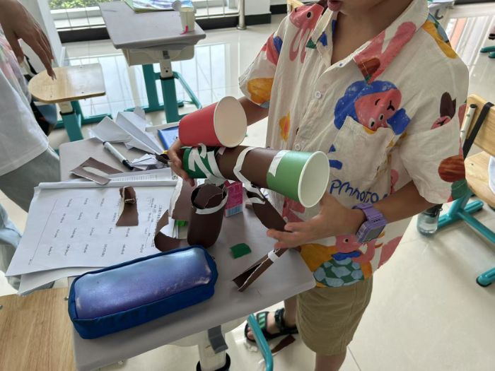 他們的作品不僅有可愛(ài)動(dòng)物造型,更有創(chuàng)新的“紙杯炮臺(tái)”,展現(xiàn)出孩子們不受拘束的創(chuàng)造力。完成作品后,孩子們興致沖沖地交流創(chuàng)作心得,在交流中,孩子們收獲靈感與快樂(lè),不斷完善自己的作品,教室成了充滿歡聲笑語(yǔ)的小天地。