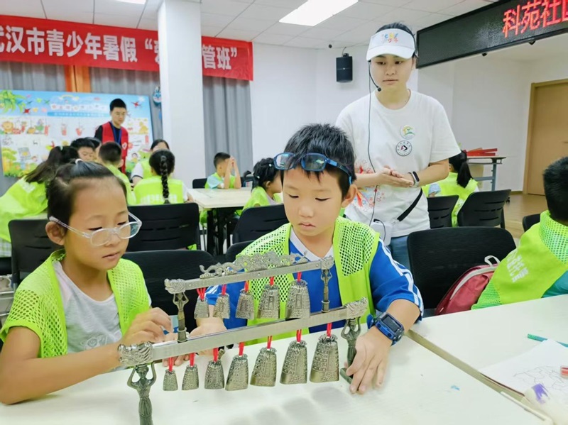 7月24至25日,社區(qū)精心策劃的非遺文化藝術(shù)課與交通安全培訓(xùn)課接連開(kāi)課,吸引了眾多社區(qū)兒童踴躍參與。非遺文化課上,在老師講解荊楚文化后,志愿者們手持曾侯乙編鐘復(fù)制品,耐心地向孩子們講解音律規(guī)律,引導(dǎo)孩子們?cè)谟^察與聆聽(tīng)中,切身感受非遺文化跨越千年的獨(dú)特魅力。交通安全培訓(xùn)課上,志愿者們則以真實(shí)案例為切入點(diǎn),結(jié)合趣味情景模擬,深入淺出地普及車輛盲區(qū)知識(shí)與意外傷害應(yīng)對(duì)常識(shí),幫助孩子們掌握基礎(chǔ)自救技能,讓應(yīng)急處理能力在互動(dòng)實(shí)踐中得到切實(shí)提升。