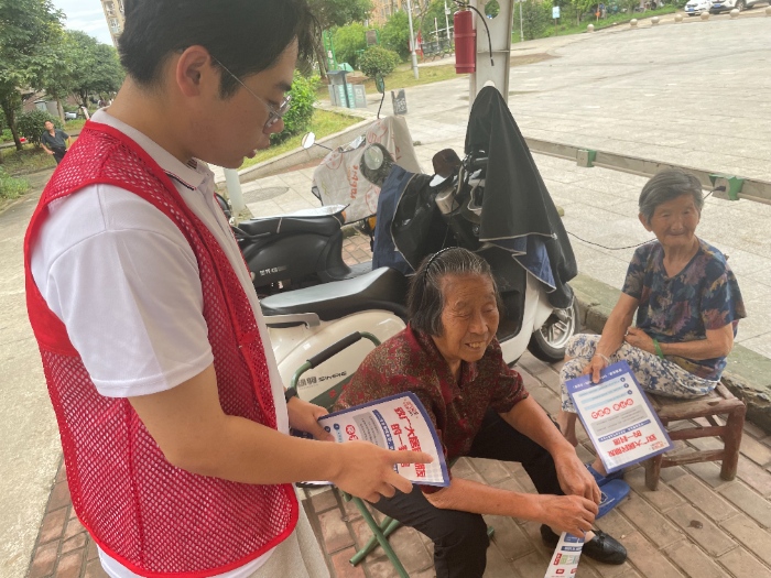 城鎮(zhèn)中的青少年也是隊(duì)員們關(guān)注的重點(diǎn)。實(shí)踐團(tuán)在學(xué)校周邊開(kāi)展了“安全伴我行”宣傳活動(dòng),通過(guò)設(shè)置宣傳展板、發(fā)放宣傳資料、現(xiàn)場(chǎng)答疑等方式,向青少年普及交通安全、網(wǎng)絡(luò)安全、防溺水等知識(shí)。