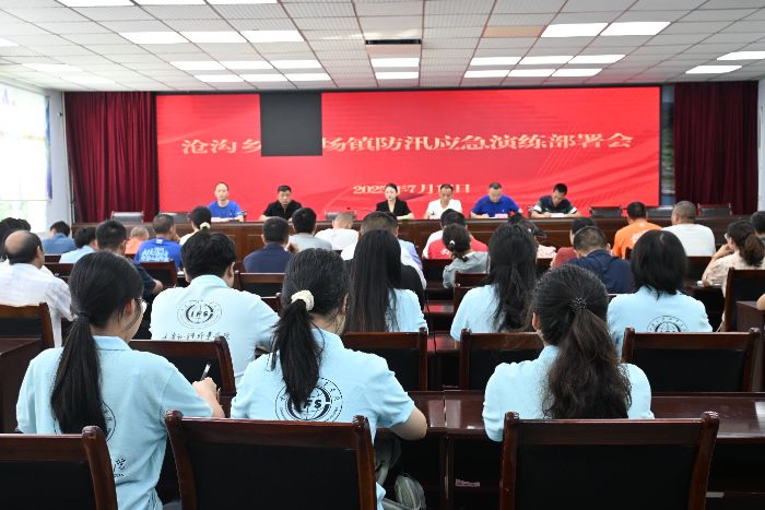 圖為滄溝鄉(xiāng)人民政府領(lǐng)導(dǎo)開(kāi)展防洪防汛演練工作部署