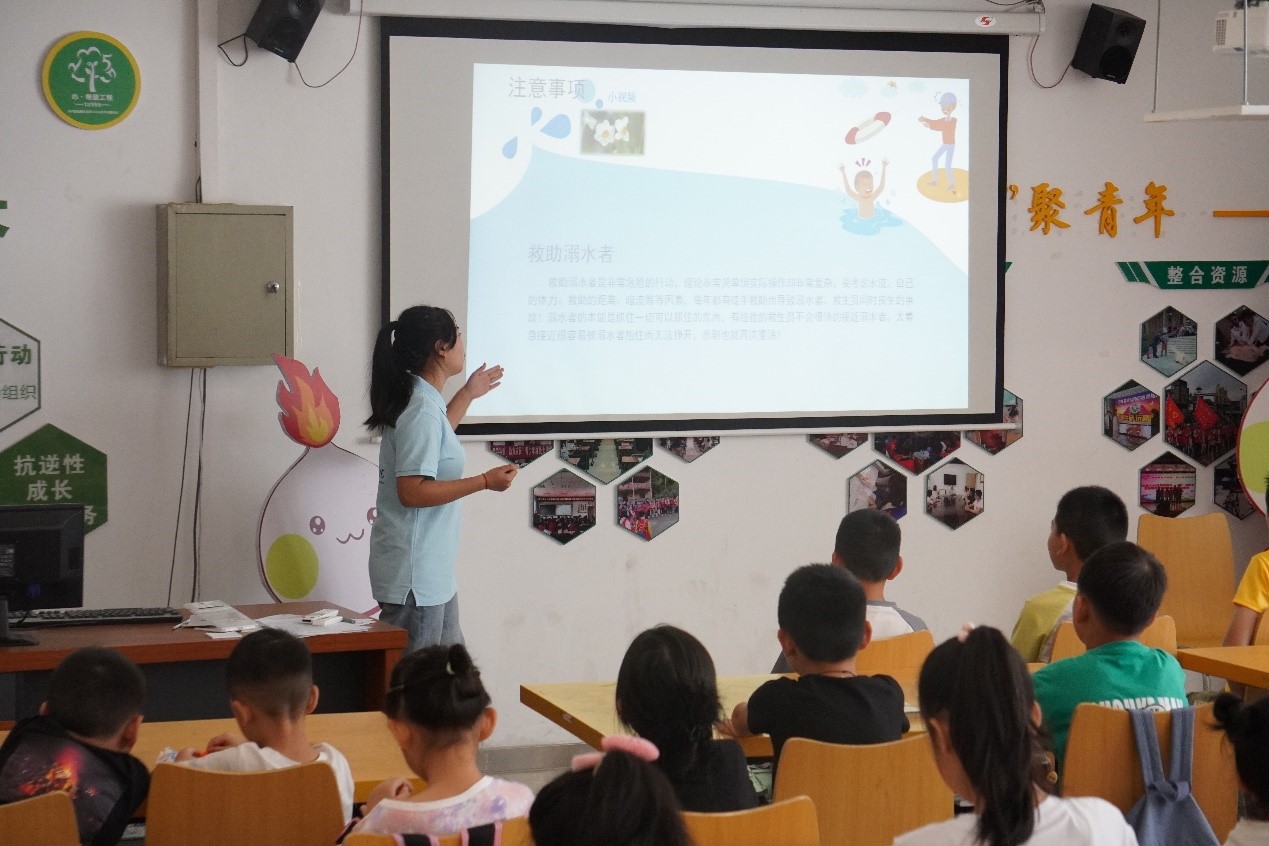以安全為線,敲響警鐘本宣講團開展了開展防洪水、防溺水安全知識教育宣講。防洪水安全知識教育主講人熊璐璐結(jié)合當?shù)氐貏葜v解如何預防洪水、如何應對暴雨山洪等相關知識。小朋友崔佳宜說:“我們只有了解洪水,才能在災害來臨之時更好的保護自己。”防溺水安全知識教育本團隊成員胡金蓉,以真實事件引入,向小朋友們普及了防溺水知識,教授小朋友們?nèi)绾巫R別潛在的水域危險,并展示了自救和他救的基本技巧,讓學生了解溺水事故的發(fā)生原因和教訓,給小朋友們敲響了安全警鐘,引導他們形成正確的水上安全意識和行為習慣,讓他們更加懂得嚴防溺水的重要性。同時,兩位主講人還設置了現(xiàn)場提問互動環(huán)節(jié),提醒孩子們珍惜生命,遠離災害高發(fā)地區(qū),讓防洪水、防溺水知識入腦入心、見行見效。