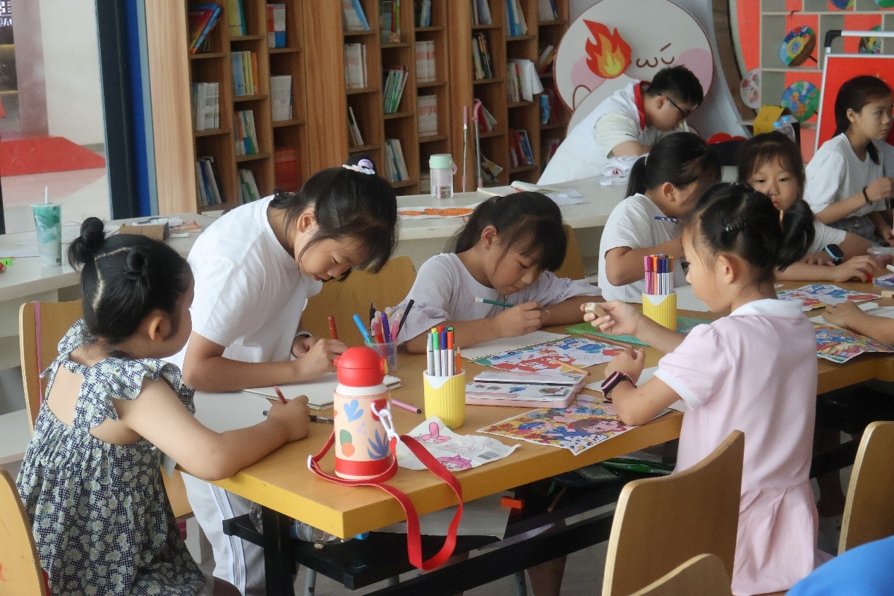 圖為小朋友們探討海報(bào)應(yīng)該如何繪制禁毒海報(bào) 楊恒博 供圖