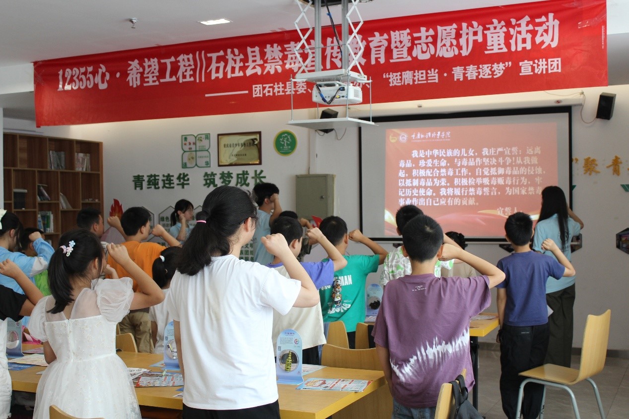 重慶外語(yǔ)外事學(xué)院“挺膺擔(dān)當(dāng),青春逐夢(mèng)”習(xí)近平新時(shí)代中國(guó)特色社會(huì)主義思想宣講團(tuán)聯(lián)合重慶市石柱縣團(tuán)委以及石柱縣禁毒辦,舉辦“12355心·希望工程|石柱縣禁毒宣傳教育暨志愿護(hù)童活動(dòng)”。此次宣講活動(dòng)旨在幫助青少年了解毒品的危害,提高他們的防范意識(shí),增強(qiáng)其抵制毒品的能力,同時(shí)引導(dǎo)小朋友們樹(shù)立正確積極的人生價(jià)值觀,讓他們從小產(chǎn)生遠(yuǎn)離毒品意識(shí),在健康環(huán)境下成長(zhǎng)。