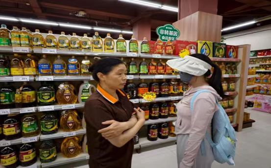 圖為華聯(lián)超市售貨員介紹銷售情況