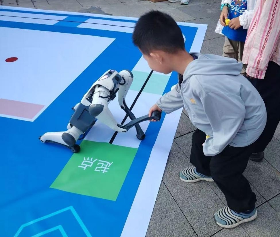 上午的圖書捐贈(zèng)儀式上,我抱著一摞沉甸甸的書,指腹蹭過(guò)磨舊的書脊。清點(diǎn)圖書時(shí)發(fā)現(xiàn),有本《昆蟲記》的扉頁(yè)被寫上了“贈(zèng)給星星”,字跡稚嫩卻用力,大概是誰(shuí)偷偷留下的祝福。孩子們排著歪歪扭扭的隊(duì)伍來(lái)領(lǐng)書,一雙雙小手接過(guò)書時(shí)總要先在衣角蹭蹭汗。有個(gè)穿涼鞋的小男孩選了本《海底兩萬(wàn)里》,封面上的鸚鵡螺號(hào)在風(fēng)里輕輕顫動(dòng),像要從紙頁(yè)里游出來(lái),他翻到潛艇插圖那頁(yè)就不肯撒手,指腹反復(fù)摩挲著紙面,突然抬頭問(wèn)我:“姐姐,真的有船能潛到海底嗎?”我還沒來(lái)得及回答,王超群教授操控的機(jī)械狗突然從旁邊竄出來(lái),搖著“尾巴”做了個(gè)轉(zhuǎn)圈動(dòng)作,嚇得小姑娘往后縮了縮,隨即爆發(fā)出咯咯的笑。原來(lái)科技與文字早就悄悄牽上了手——書里的想象正被齒輪與芯片一點(diǎn)點(diǎn)托進(jìn)現(xiàn)實(shí)。