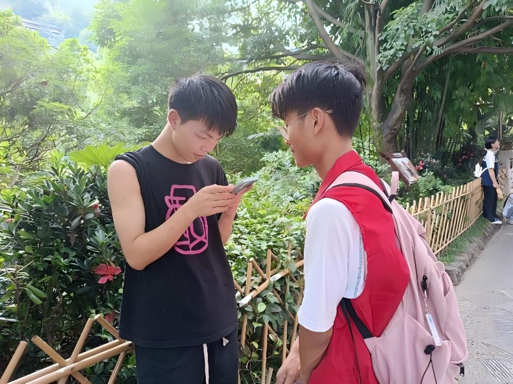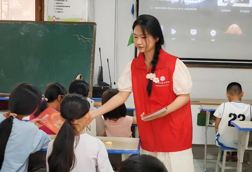 圖為團(tuán)隊(duì)成員為學(xué)生們發(fā)放招生宣傳手冊