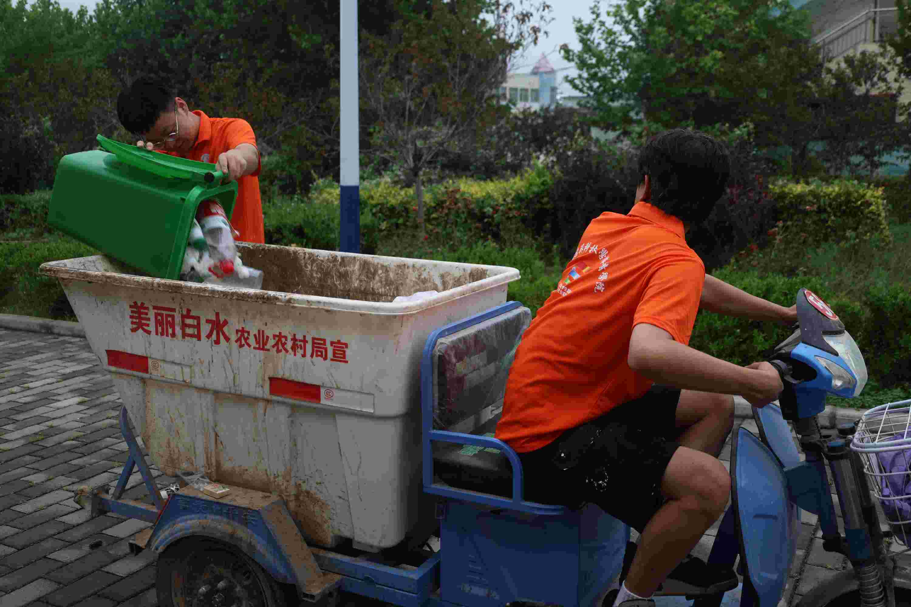 再次,團隊成員還協(xié)助村民進行了垃圾轉(zhuǎn)運清理工作,他們手持清掃工具,推著垃圾清運車,改善了村莊的衛(wèi)生狀況。