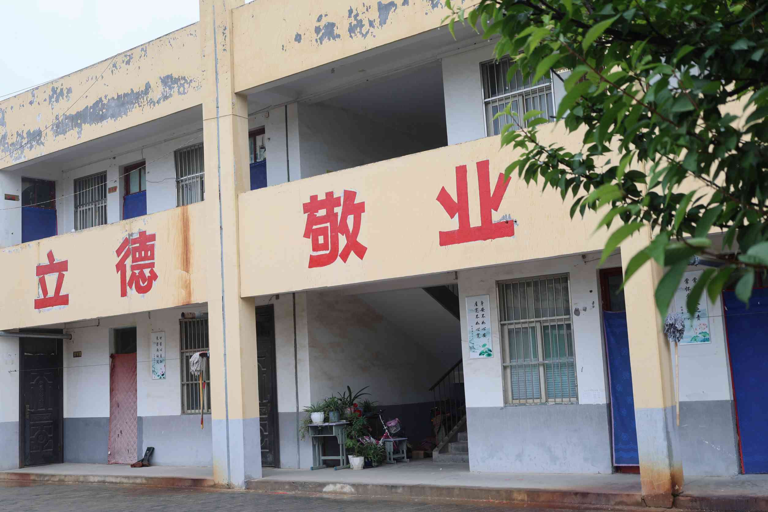 他們看到,雷牙村黨群服務(wù)中心門前的石柱顏色斑駁,長期無人翻修;雷牙小學(xué)墻體上的校訓(xùn)標語紅漆掉落、不再醒目。這些不僅影響了村里的村容村貌,也影響了黨支部的議事環(huán)境與學(xué)生的學(xué)習(xí)氛圍,時不時掉落的墻皮還會造成安全隱患。近期,實踐團注意到了這一問題,并決定采取行動,為雷牙村帶來改變。