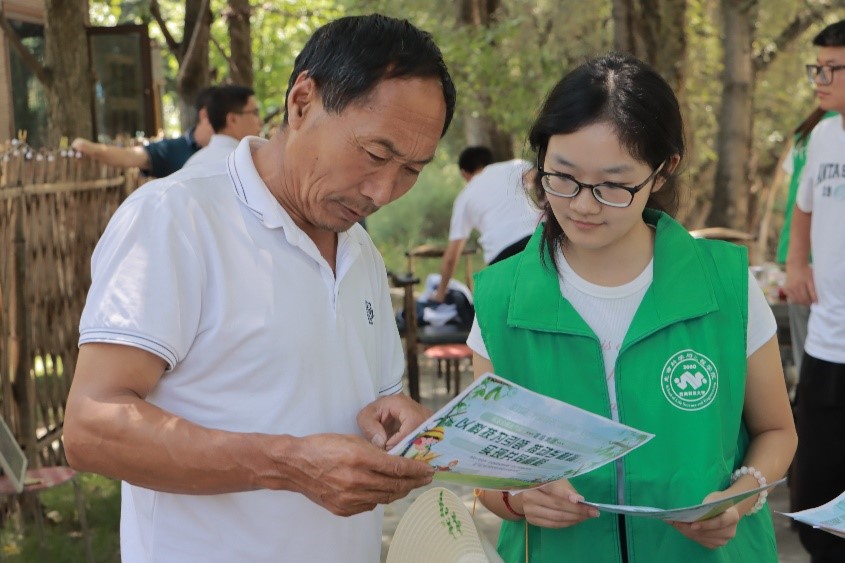 (實踐團成員向農戶講解中央一號文件)