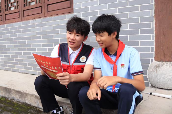 圖為服務隊成員學習紅色歷史知識