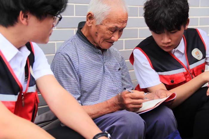 圖為服務隊成員傾聽廖開華老人講述崢嶸歲月