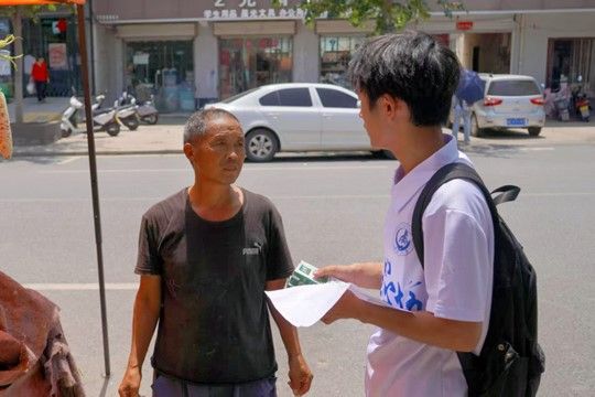 圖為志愿者在街道上與老人交流調(diào)研。馬昭卿供圖