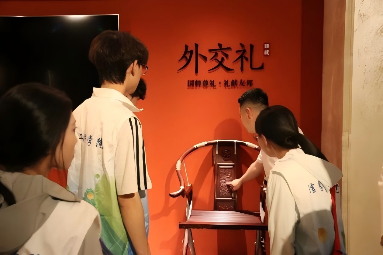 2025年6月26日,實踐隊來到仙游縣榜頭鎮(zhèn)三福藝術(shù)館參觀學(xué)習(xí)。在展館陳經(jīng)理的指引下,隊員們學(xué)習(xí)到了中國傳統(tǒng)家具精湛的制作工藝與深厚的文化內(nèi)涵,還傳遞“平等相交、合作共贏”的禮儀理念,深刻感受到中國傳統(tǒng)文化的獨特魅力與現(xiàn)代價值。
