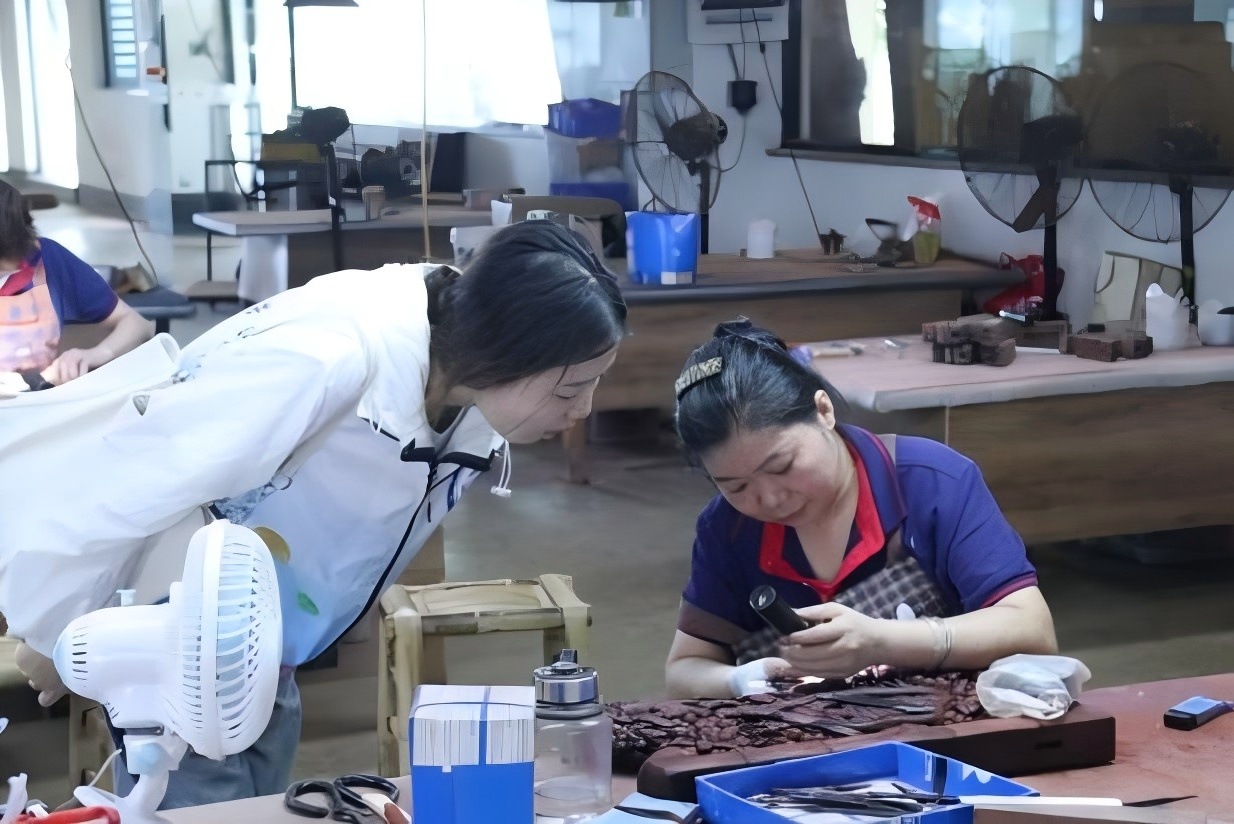 深入生產(chǎn)車間,沉浸式觀摩木雕制作全流程,看著手工匠人將“三分雕七分磨”的傳統(tǒng)工藝精髓發(fā)揮得淋漓盡致。這種“古今對話”的生產(chǎn)場景,生動展現(xiàn)了“工匠精神”在當(dāng)代的傳承與創(chuàng)新,讓隊員們對傳統(tǒng)工藝的現(xiàn)代化轉(zhuǎn)型有了更深刻的認識。