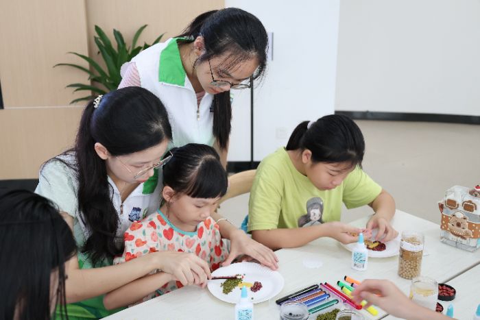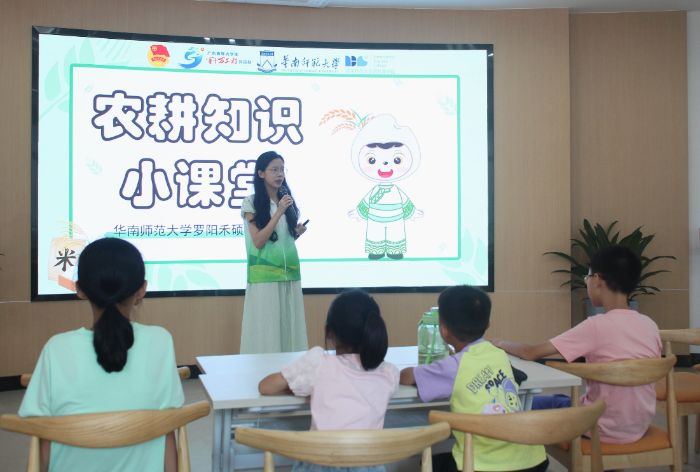 農(nóng)耕文化系列課程的設(shè)計(jì)、開發(fā)、落地,在惠州博羅黨群服務(wù)中心和承糧陂村開展理論實(shí)踐課堂。理論課堂上,隊(duì)員們開展《米飯成長記》繪本閱讀課,育種、插秧、抽穗、收割,水稻的種植周期使孩子們理解了“粒粒皆辛苦”的含義;設(shè)計(jì)“我是小農(nóng)夫”情景表演,學(xué)生分別扮演稻苗、青蛙、螟蟲和稻草人等角色,了解農(nóng)田生態(tài)系統(tǒng);進(jìn)行“稻谷繪豐年”活動(dòng),培養(yǎng)學(xué)生美育和創(chuàng)造力。