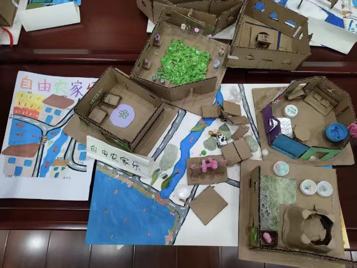 在建造課上,同學(xué)們化身“小小建筑師”和“小小城市設(shè)計(jì)師”,從微觀的教室空間營(yíng)造到宏觀的城市系統(tǒng)設(shè)計(jì),循序漸進(jìn)地在實(shí)踐中,深刻體會(huì)從單體空間到復(fù)雜城市系統(tǒng)的演變與關(guān)聯(lián)。建筑學(xué)院的幾位同學(xué),將大學(xué)課堂的建筑、規(guī)劃知識(shí)簡(jiǎn)化,帶領(lǐng)學(xué)生們認(rèn)識(shí)不同的房屋、城市類型。之后,同學(xué)們從認(rèn)知環(huán)節(jié)逐步轉(zhuǎn)向動(dòng)手,親自搭建小房屋,再將房屋拼貼到更大的地圖底板上,分小組設(shè)計(jì)出屬于自己的創(chuàng)想城市。學(xué)生們?cè)谡n程中鍛煉團(tuán)隊(duì)協(xié)作能力,激發(fā)動(dòng)手能力和創(chuàng)作想象力。
