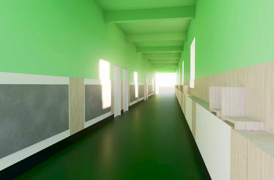 在與學(xué)生相處之余,團(tuán)隊(duì)成員還靈活運(yùn)用課堂所學(xué),為南樓小學(xué)設(shè)計(jì)北教學(xué)樓廊道改造方案,解決當(dāng)?shù)丶謫?wèn)題,進(jìn)一步深化校地合作。前期設(shè)計(jì)階段,團(tuán)隊(duì)成員對(duì)教學(xué)樓廊道進(jìn)行全面測(cè)繪工作,并在充分了解校方“簡(jiǎn)潔、明亮、易施工”的要求后,提供三版設(shè)計(jì)方案并被校方采用。后期落地階段,成員化身小建筑師,與校方領(lǐng)導(dǎo)共同商定施工用材與材料預(yù)算,輔助施工團(tuán)隊(duì)更快完成實(shí)地改造工作。