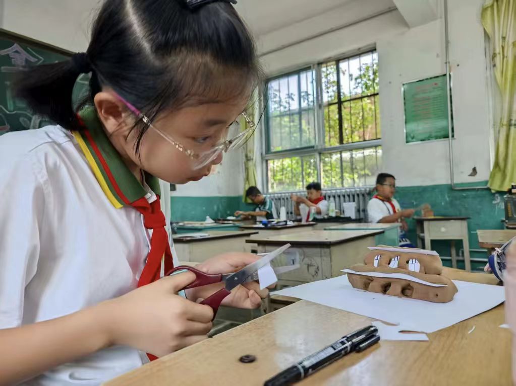 “今天,大家化身‘小偵探’,跟隨梁思成、林徽因兩位建筑家的步伐,一起探秘山西古建的秘密……”地域文化課負(fù)責(zé)人夏浩哲老師娓娓道來(lái)。他們“抵達(dá)”了山西佛光寺、陜西黃土高坡、云南哈尼梯田……在遼闊天地中,學(xué)生們感受到山河壯闊和文韻豐厚。同時(shí),學(xué)生們動(dòng)手制作了剪紙和陜北窯洞,在非遺文化中領(lǐng)悟在非遺文化中領(lǐng)悟匠心與傳承的溫度,激發(fā)同學(xué)們對(duì)各民族地域文化的贊嘆,樹立起對(duì)本地本省和家國(guó)高度的文化自信。